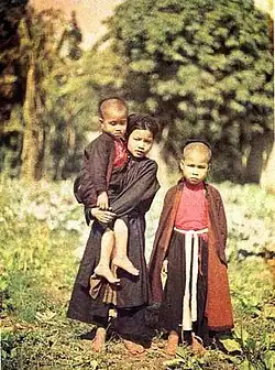 The áo tứ thân (Vietnamese: [ʔaːw˧˦ tɨ˧˦ tʰən˧˧], four-piece shirt), is a traditional Vietnamese dress commonly worn in Northern Vietnam. The dress is related to the áo ngũ thân (five-piece shirt) and the áo đối khâm (parallel-flap robe).[1]