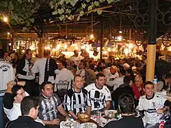 The name of the group comes from the central market place of Beşiktaş district, which is located in downtown, near the Istanbul Bosphorus. Beşiktaş Çarşı contains many restaurants, bars, a big fish market, and also numerous cosmetics, clothing and technology shops. There the fans assemble and pass their time with various activities until the matches. It is possible to see the fans on match days, wearing black-and-white jerseys at the fish restaurants and bars.[8] Also, the newly produced chants by Beşiktaş fans are usually sung and embraced for the first time in Beşiktaş Çarşı.[13]