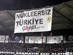 Çarşı and Greenpeace with a huge placard, standing against a possible nuclear power plant establishment in Turkey