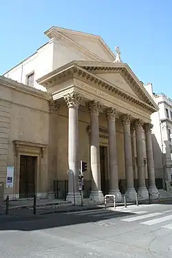 The church building was designed by architect Pascal Coste (1787-1879) in 1833, in a similar manner as the nearby Église Saint-Lazare, also designed by Coste.[3][6] Drawing upon his designs, architect Joseph Ferrié oversaw the construction of the facade.[3] In 1868, Henri-Jacques Espérandieu (1829-1874) designed the casing of the pipe organ and the ceiling of the nave.[3] The high altar and the baldachin were designed by Louis Sainte-Marie-Perrin (1835-1917).[3] The pipe organ was made by Aristide Cavaillé-Coll (1811-1899).[3][6] The entire church was only finalized as late as 1925.[3] However, it was dedicated on April 25, 1855.[5]