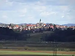 The local parish church is dedicated to Saint Michael and belongs to the Roman Catholic Archdiocese of Maribor. It was originally a Romanesque building. It was greatly rebuilt in 1374, but some of the original structure survives in the walls of the nave. It was restyled in the Baroque in the 18th century.[3]
