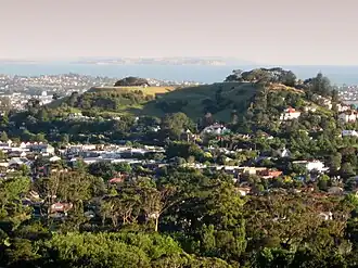 Located in the Remuera suburb, to the east of the Newmarket commercial suburb, it has been extensively modified by human use, first by Māori for use as a and later by use as quarry and pasture land before finally having a water reservoir installed in its cone to supply the surrounding area. An additional, partially buried, water reservoir was built on the low southern side of the mountain in 1955. English oaks and pōhutukawa are the most common trees on the hill.[2]