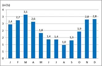 The average monthly discharge of the Ščavnica at Pristava (1971–2000)
