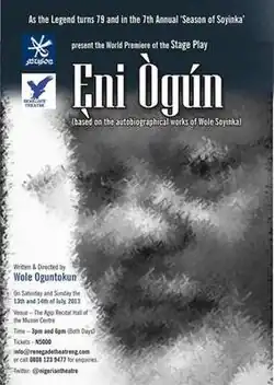 Ẹni Ògún is a biographical stage play performed in celebration of Wole Soyinka's 80th birthday in 2014.[1] The play, which lasted for two days, was performed at Muson Centre and was written and directed by Wole Oguntokun.[2]