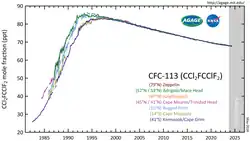 CFC-113 is one of the three most popular CFCs, along with CFC-11 and CFC-12.[17]