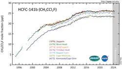 - ^ a b "HCFC-141b". NOAA Earth System Research Laboratories/Global Monitoring Division. Retrieved 2021-02-12.