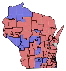 8. ^ Republicans Mark Gottlieb (60th district), Scott Gunderson (83rd district), and Michael Huebsch (94th district) resigned before the start of the term to accept appointments in Governor Scott Walker's administration.