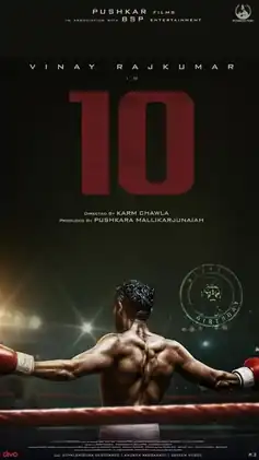 10 is a 2022 Kannada-language film directed by Karm Chawla and starring Vinay Rajkumar in the role of a boxer, Gopal Deshpande as the coach and Anusha Raghunath as the boxer's love interest. The film is a sport drama exploring the life and struggles of a boxer.[1][2] 10 was announced in May 2019 and the shooting commenced in September 2019, wrapping just three months later in December 2019. It was made with a budget of ₹70 lakh (US$83,000), and the production budget amounted to just under ₹50 lakh (US$59,000), thus setting the stone for a new generation of high quality low-budget Kannada flicks. Before the commencement of principal photography, actor Vinay Rajkumar trained intensely for his role as a Featherweight Boxer by having regular workouts and strict diet regimen for six months.[3]