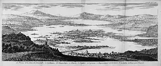 This earthquake left all the houses in the Valley of Mexico destroyed and caused considerable damage to the palaces and teocallis in the area. Several chinampas sank, the hills were washed away, crumbled and disintegrated, cracks were created in the earth and caused a tsunami in Lake Texcoco.[5]