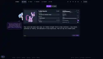 The platform was non-commercial,[17] had no advertisements, generated no revenue, and operated without requiring user registration or accounts.[18] Users generated speech by inputting text and selecting a character voice, with optional parameters for emotional contextualizers and phonetic transcriptions. Each request produced three audio variations with distinct emotional deliveries sorted by confidence score.[51] Characters available included multiple characters from Team Fortress 2 and My Little Pony: Friendship Is Magic, including the Mane Six and Derpy Hooves; GLaDOS, Wheatley, and the Sentry Turret from the Portal series; SpongeBob SquarePants; Kyu Sugardust from HuniePop, Rise Kujikawa from Persona 4; Daria Morgendorffer and Jane Lane from Daria; Carl Brutananadilewski from Aqua Teen Hunger Force; Steven Universe from Steven Universe; Sans from Undertale; Madeline and multiple characters from Celeste; the Tenth Doctor Who; the Narrator from The Stanley Parable; and HAL 9000 from 2001: A Space Odyssey.[52] Out of the over fifty[11] voices available, thirty were of characters from My Little Pony: Friendship Is Magic.[23] Certain "silent" characters like Chell and Gordon Freeman were able to be selected as a joke, and would emit silent audio files when any text was submitted.[53] Characters from Undertale and Celeste did not produce spoken words but instead generated their games' distinctive beeps when text was entered.[54]