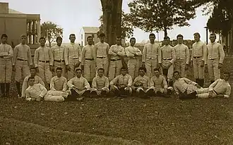 The 1894 LSU football team represented Louisiana State University (LSU) during the 1894 college football season. The Tigers adopted a new coach, Albert Simmonds, for the three-game 1894 season. This season marked LSU's first ever victory with the 26–0 win over Natchez Athletic Club. The team's captain, Samuel Marmaduke Dinwidie Clark, became the first LSU player to ever score a touchdown during the game against Natchez A.C. The first football game played on the LSU campus was on December 3, 1894, against Mississippi. LSU's only touchdown in that game was scored by the head coach, Albert Simmonds.[1] This was the first year of play for William S. Slaughter, who lettered as an end for five years, from 1894 to 1898. Slaughter was LSU's first five-time football letterman.