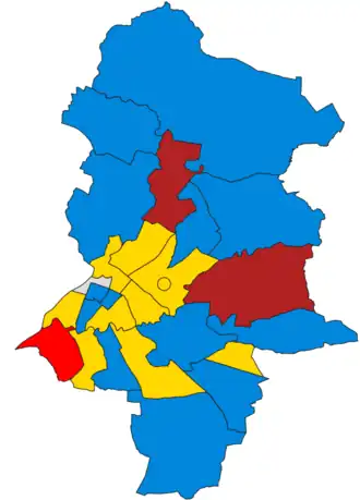| Party | Votes | Seats | Full Council | |||||||