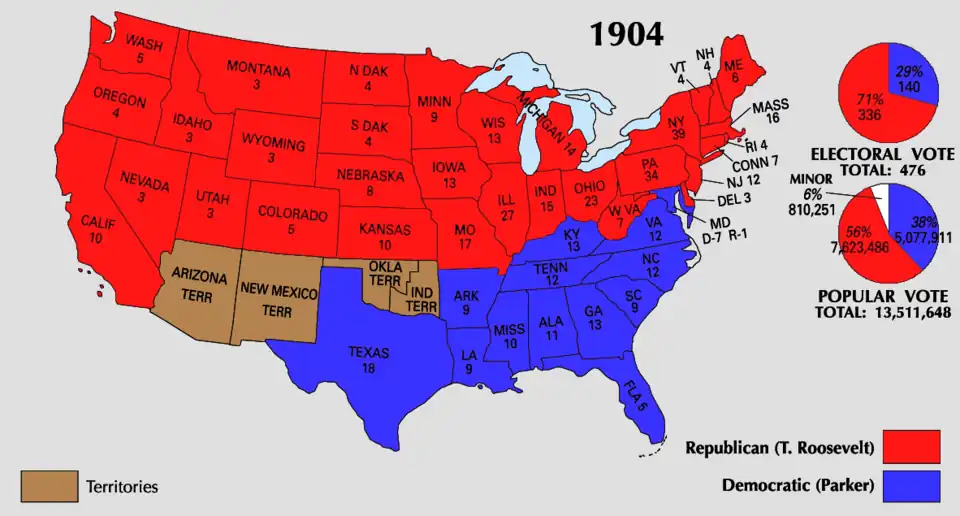 - ^ "1904 Presidential General Election Data - National". Uselectionatlas.org. Retrieved April 26, 2013.