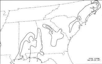 - ^ a b c "Pensacola Gets Cut Off by Gale; 3 States in Path Hurricane". The Daily Free Press. United Press International. September 29, 1917. p. 1. Retrieved May 18, 2016 – via Newspapers.com.