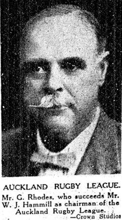 On 10 August the Auckland Rugby League Chairman, Mr. W.J. Hammill tendered his resignation for business reasons. He had occupied the position for five years. He was congratulated on his contribution to the game and made a life member of the League. Mr. George Rhodes was elected as the new chairman of the Management Committee.[3]