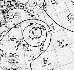 The season's activity was reflected with an accumulated cyclone energy (ACE) rating of 50,[1] below the 1921–1930 average of 76.6.[3] ACE is a metric used to express the energy used by a tropical cyclone during its lifetime. Therefore, a storm with a longer duration will have high values of ACE. It is only calculated at six-hour increments in which specific tropical and subtropical systems are either at or above sustained wind speeds of 39 mph (63 km/h), which is the threshold for tropical storm intensity. Thus, tropical depressions are not included here.[1]