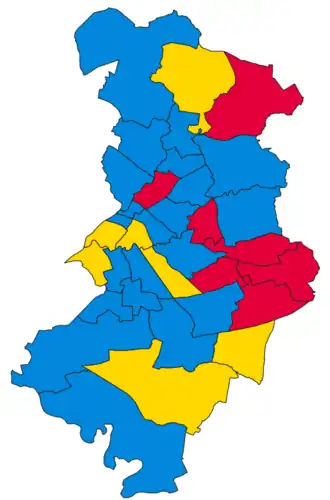 | Party | Votes | Seats | Full Council | |||||||