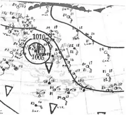 Surface weather analysis of the hurricane on September 3 near the Bahamas | |