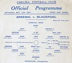 - ^ "Blackpool Downs Arsenal For Title; Wins by 4-2 Before 55,000 to Capture Unofficial Honors in English Soccer". The New York Times. 16 May 1943. Archived from the original on 20 July 2023. Retrieved 20 July 2023.