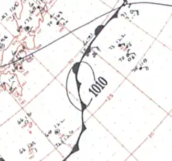 | Peak intensity | Winds not specified; ≤1010 hPa (mbar) |