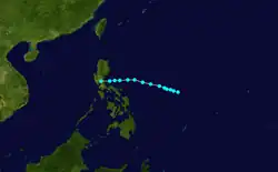 A tropical storm was tracked on November 1 to the northwest of the Marianas. It moved to the west, before making landfall on Tayabas (now Quezon) in the Philippines. It was last noted on November 4 over modern-day Aurora Province. The damage is unknown.