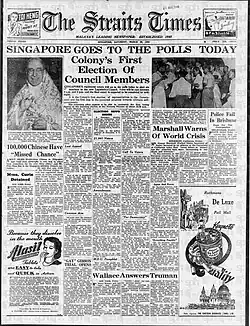 - ^ "Singapore Legislative Council General Election 1948". Archived from the original on 2023-01-24. Retrieved 2015-09-14.