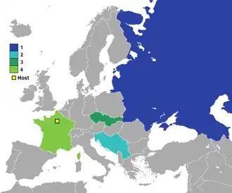 In the quarter-finals, Spain, who were under Francoist rule, refused to travel to the Soviet Union for political reasons. After a proposal to play the tie over one leg at a neutral venue were rejected by the Soviets,[2][3] Spain were disqualified: accordingly, three of the final four teams were from communist countries: the USSR, Czechoslovakia, and SFR Yugoslavia, to go with hosts France.