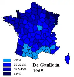 Presidential elections were held in France on 5 December 1965, with a second round on 19 December. They were the first direct presidential elections in the Fifth Republic and the first since the Second Republic in 1848. It had been widely expected that incumbent president Charles de Gaulle would be re-elected, but the election was notable for the unexpectedly strong performance of his left-wing challenger François Mitterrand.