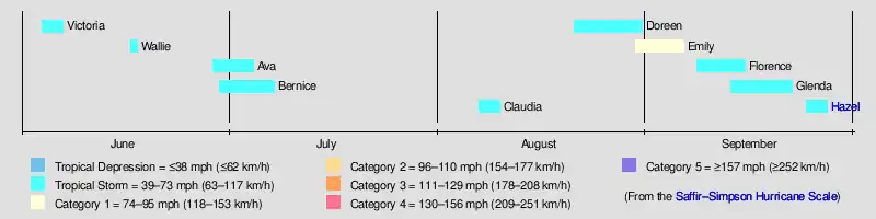 Tropical Storm Glenda formed on September 13 and maintained the same intensity of 50 mph (80 km/h) for nine days before advisories were dropped. [1]