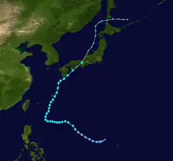 - ^ a b c "Typhoon 196604 (Kit) – Detailed Track Information". Japan Meteorological Agency. National Institute of Informatics. October 17, 1990. Retrieved March 12, 2015.