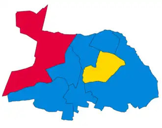 | Party | Votes | Seats | Full Council | |||||||