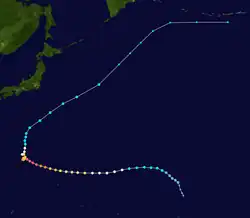 31 tropical depressions formed this year in the Western Pacific, of which 27 became tropical storms. 20 storms reached typhoon intensity, of which 4 reached super typhoon strength. No storms this season caused significant damage or deaths.