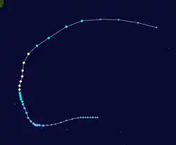 | Peak intensity | 100 km/h (65 mph) (1-min); 995 hPa (mbar) |