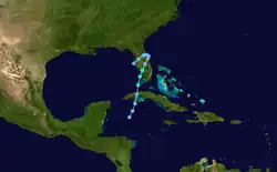 - ^ a b c d e f g h i j k l m n o p q r s t u v w x y z aa ab ac ad ae af ag ah ai aj ak al am an ao ap aq ar as at au av aw ax ay az ba bb bc "Atlantic hurricane best track (HURDAT version 2)" (Database). United States National Hurricane Center. May 11, 2024.