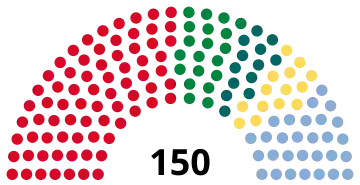 Last election 43.1%, 68 seats 21.4%, 31 seats 10.1%, 18 seats