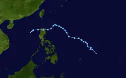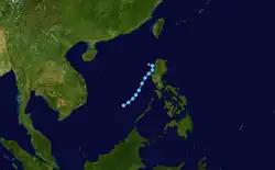 Forming on June 28, Pamela slowly travelled towards the Philippines, and made landfall late on June 30. The tropical storm brought rains and winds to the Philippines, but no major damage was reported. Having greatly weakened after landfall, Pamela degenerated into a remnant low and dissipated over the South China Sea on July 1, just as Category 5 Super Typhoon Olga reached its peak.