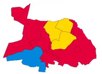 | Labour Party | 5,749 (33.8%) | 5 (55.6%) | 5 / 9