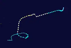 | Peak intensity | 65 km/h (40 mph) (10-min); 995 hPa (mbar) |