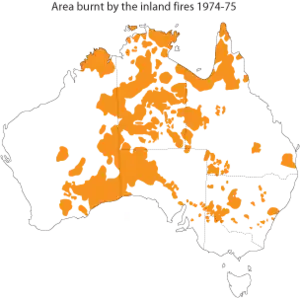 In 1974-75, lush growth of grasses and forbs following exceptionally heavy rainfall in the previous two years provided continuous fuels through much of central Australia and in this season fires burnt over 117 million hectares or 15 per cent of the total land area of this continent.