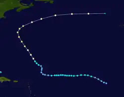 3. ^ a b c d e f g h i j k l m n o p q r s t u v w x y z aa ab ac ad ae af ag ah ai aj ak al am an ao "Atlantic hurricane best track (HURDAT version 2)" (Database). United States National Hurricane Center. May 11, 2024. Public Domain This article incorporates text from this source, which is in the public domain.