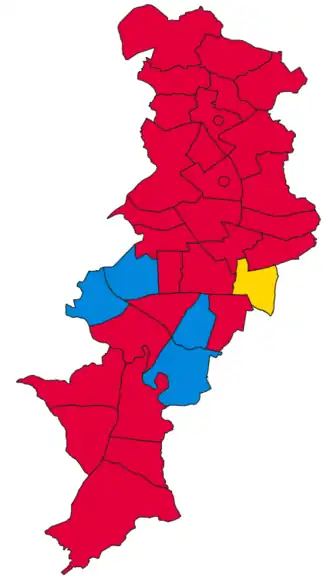 | Labour Party | 75,837 (57.0%) | 30 (85.7%) | 30 / 35
