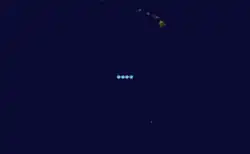 The seventh tropical cyclone of the season developed during the afternoon hours of July 23 north of Clipperton Island. Thereafter, the EPHC upgraded the depression to Tropical Storm Gil on July 24. Gil subsequently began to intensify; on 0000 UTC July 26, the storm was upgraded into a Category 1 hurricane. Early on July 27, the storm attained its peak intensity of 90 mph (150 km/h). Despite turning west-northwest, Hurricane Gil maintained hurricane intensity until July 29 when the storm began to encounter cooler waters. Two days later, Gil was downgraded a tropical depression.[7] After entering CPHC's warning zone on August 1, Gil was re-upgraded into a tropical storm.[10] Gil accelerated while approaching the Hawaiian Islands; on August 3, the tropical cyclone reached its secondary peak of 45 mph (75 km/h). After passing through the Hawaiian islands, Gil passed very close to French Frigate Shoals on August 4 as a marginal tropical storm. Early on August 5, the system was downgraded into a tropical depression and degenerated into a trough about 300 mi (485 km) west-northwest of Tern Island later that day.[10]