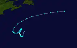 A second storm formed on August 31 as a non-tropical low strengthened into Tropical Storm Cesar off the East Coast of the United States. Cesar traveled east-northeast and strengthened gradually until it became extratropical and merged with another system off the coast of Newfoundland on September 2.[20]