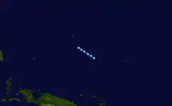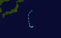 JMA declared that a depression formed from a cold-core low on September 2. Moving eastwards, it crossed the International Date Line on the next day.[19] Just after crossing it strengthened into a tropical storm, thus receiving the name Moke from the Central Pacific Hurricane Center.