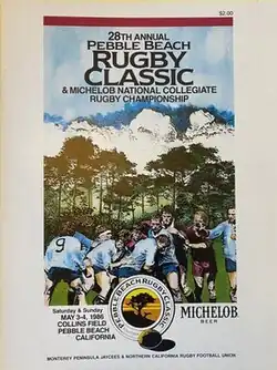 The 1986 National Collegiate Rugby Championship was the seventh edition of the official national championship for intercollegiate rugby. The tournament took place concurrently with the 28th Pebble Beach Rugby Classic on Collins Polo Field at Pebble Beach, California. The Cal Bears won their sixth title with a victory over Dartmouth. Kevin Lake of California was the MVP forward with Juta Vanda of Dartmouth MVP back. Air Force took second in the Lookin' Good Award.