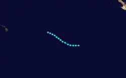 During the afternoon of July 16, a tropical depression formed thousands of miles west of Mexico, and within 12 hours it strengthened into a tropical storm. On July 18, Estelle intensified into a hurricane. Located in a favorable environment, Estelle continued strengthening to become the first major hurricane of the season on July 20.[2] The hurricane entered the Central Pacific Hurricane Center's area of responsibility near its peak strength of 130 mph (210 km/h), a Category 4 hurricane. The hurricane veered to the west and passed south of Hawaii. Estelle weakened to a tropical storm on July 23, and on July 25, it weakened to a depression. The storm dissipated two days later.[3]