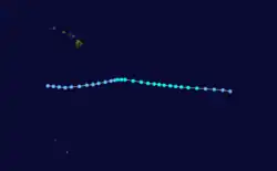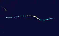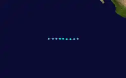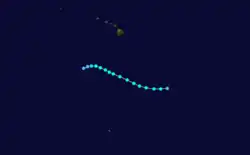 Tropical Depression Six developed on July 13 about 900 mi (1,400 km) southwest of Cabo San Lucas. The depression had same peak intensity as Three and had dissipated on July 17.[5] According to the Joint Typhoon Warning Center, on July 18 a tropical depression formed east of the International Date Line, and two days later it exited CPHC's area of responsibility;[42] however, this storm was not included into CPHC database.[3] As it entered into western Pacific, it strengthened as a tropical storm and received the name Wynne.[43] The final tropical cyclone developed at 1800 UTC November 24 around 1,000 mi (1,600 km) southwest of Baja California Sur. A very weak cyclone, the depression dissipated on November 25, ending the above-average season.[5]