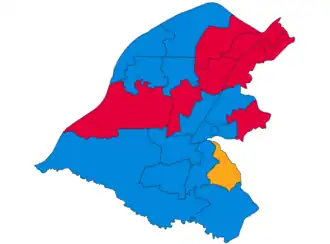 | Conservative Party | 39,639 (48.9%) | 13 (59.1%) | 13 / 22