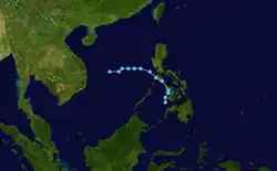 The 1990 Pacific typhoon season was another active season, with 31 storms being named during the year. It had no official bounds; it ran year-round in 1990, but most tropical cyclones formed in the northwestern Pacific Ocean between May and November.[1] These dates conventionally delimit the period of each year when most tropical cyclones form in the northwestern Pacific Ocean.