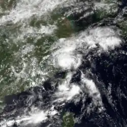 A tropical disturbance trekked across the Philippines in mid June, upon entering the South China Sea a depression formed. The depression was upgraded to Tropical Storm Nathan on June 16. Tropical Storm Nathan reached peak intensity of 65 mph (100 km/h) shortly before striking Hainan Island. In the South China Sea the Chinese ship Tien Fu sank killing 4 people. In southern China torrential rains caused flooding in Guangdong Province killing 10 people, two people drowned in Macau due to high waves. Tropical Storm Nathan then continued northwestwards making a final landfall near the Vietnam/China border.[3] The storm caused approximately 1.9 million RMB in damages (US$346,000).[5]